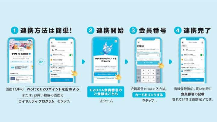 今回のポイント連携により、Woltのアプリやウェブサイトに掲載されているサツドラの店舗で商品を購入すると、200円(税抜)ごとに1ポイントのEZOポイントを貯めることができる。Woltで貯めたEZOポイントは、購入の翌月10日から20日までの間にポイント残高に反映される。対象店舗はサツドラ117店舗。