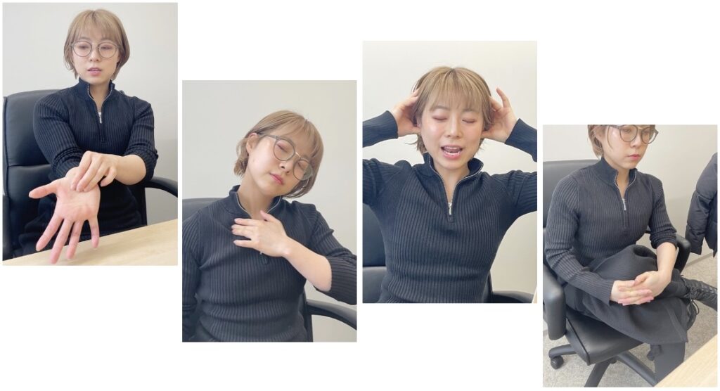 デスクでパソコン作業をされる方は、姿勢が前傾になりがちです。そのまま同じ姿勢でいると体が固まり、血流が悪くなり、脳も疲れてしまいます。そうならないために、隙間時間を見つけて、簡単なストレッチをしてみてください。