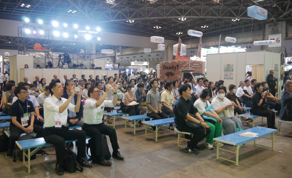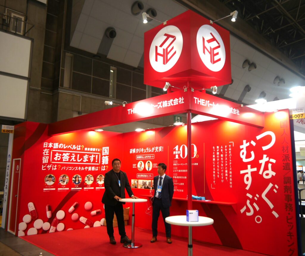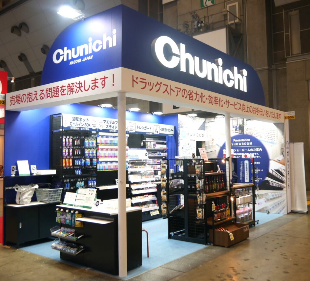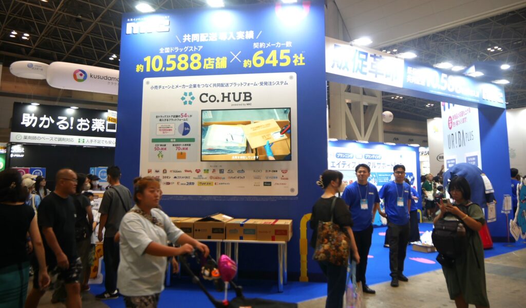 特に顕著だったのが「ストア&ファーマシーソリューションゾーン」のBtoB提案。共同配送プラット・受発注システムを展開するMIC社、調剤事業を支える「助かる!お薬ロッカー」の使い方を一般消費者にも伝えていたFUJI社、充実した研修カリキュラムで外国人人材と店舗をつなぐTHEパートナーズ社、店舗の省力・効率化を什器で可能とする中日販売、そして今年もショーのオフィシャルショッパーを手掛けた日本サニパック社などが、商談に力を込めた。