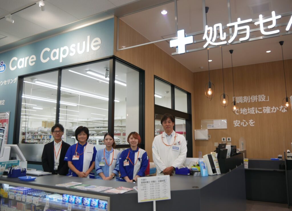 遠藤部長は「ウエルシア松本渚店は共通カウンターにより未病・予防・治療を面でフォローできる店舗」とその取り組みに胸を張る。