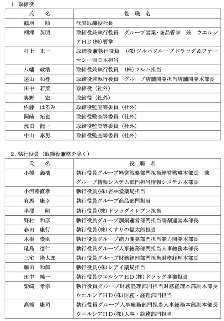 株式会社ツルハホールディングスが、ウエルシアホールディングス株式会社と12月1日に統合してからの経営体制を発表した。