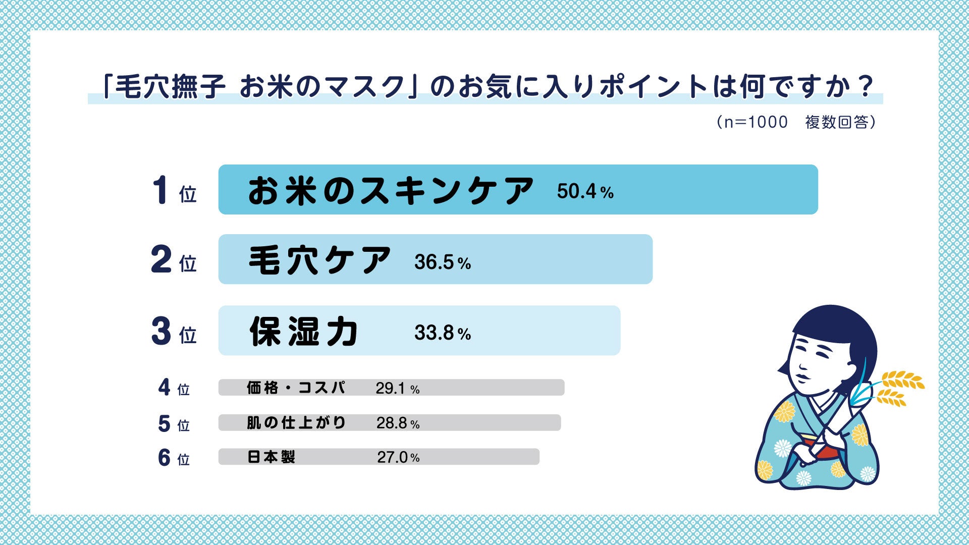 第1位は『お米のスキンケア』。日本人にとって馴染みのあるお米を使ったフェイスケアアイテムであることが、支持を集めている。自由記述でも『日本を感じられて良い』『お米だから安心感がある』など、国産米由来成分への信頼感が評価されている。