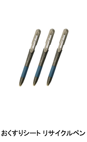 当プログラムは2022 年 10 月にスタートし、回収量は本年 11 月末時点で 16 トンを超えている。回収した「おくすりシート」は、粉砕・加工し、ボールペンやトレーに再生し、回収により付与されるテラサイクルポイントとの交換が可能となった。また、この再生したボールペンは、横浜市内の回収拠点であるケアプラザにも提供されている。今年 10 月には、早稲田大学 GCC Common Room 内に「おくすりシート」の再生素材を用いて作製されたカウンターテーブルが設置された。