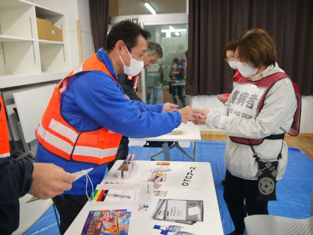訓練は、地元自治町会をはじめ、葛飾区の医師会、歯科医師会、薬剤師会、歯科技工士会、助産師会、栄養士会といった専門機関、そして近隣病院・クリニックといった施設がタッグを組む。そこにJACDSが加わり、軽症者へのOTC医薬品の提供はもちろん、湿布や絆創膏などの衛生品の供給が求められる。