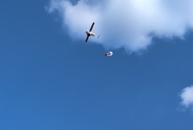 配送経路および方法については、長距離飛行可能な米国Zipline社の固定翼ドローンを利用し、事前に飛行許可を取得した指定経路に沿って飛行。