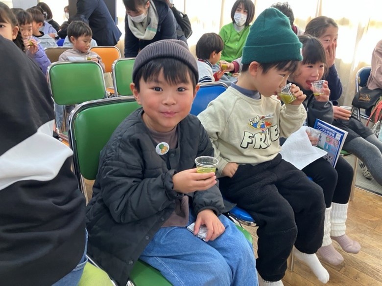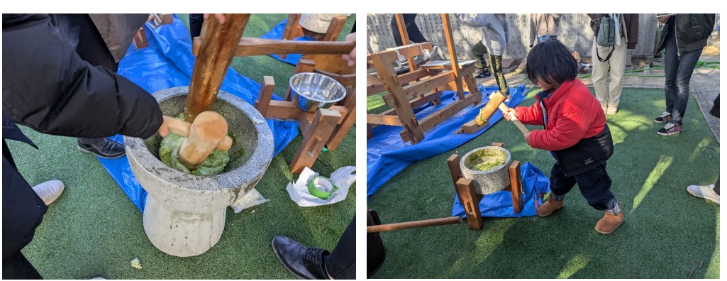 最後に、栄養満点のケールカレーを食べたり、ケールが入ったおもちをついたり、参加者全員で楽しい食事タイムを過ごした。参加者からは「ケールは今まで飲んだことがなかったけど、みかんジュースと一緒に飲んでとても美味しかった」「日本は野菜不足と知ったので、これからたくさん野菜を食べたり、青汁を飲もうと思った」などの嬉しい声が寄せられたという。