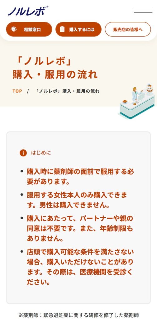 購入・服用の流れ:https://www.daiichisankyo-hc.co.jp/site_norlevo/purchase-process/
