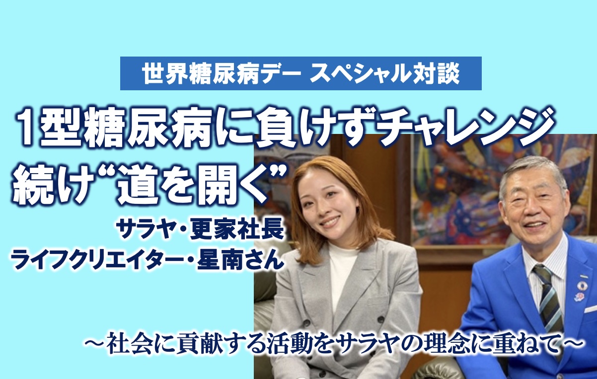 世界糖尿病デースペシャル対談サラヤ・更家社長×ライフクリエイター・星南さん〜社会に貢献する活動をサラヤの理念に重ねて〜 1型糖尿病は、自己免疫の働きによって膵臓の細胞が破壊され、インスリンが分泌されなくなる原因不明の病気...