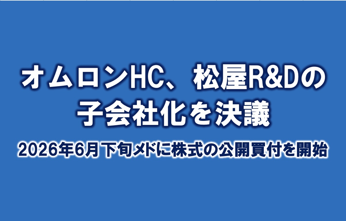 オムロンHCが松屋R&Dの子会社化を決議 オムロンヘルスケア株式会社(オムロンHC、岡⽥歩社長)は15日、自動⾞安全装置縫合システムの開発・製造・販売、レーザー裁断機の開発・製造・販売、血圧計センサー⽤腕帯の製造...