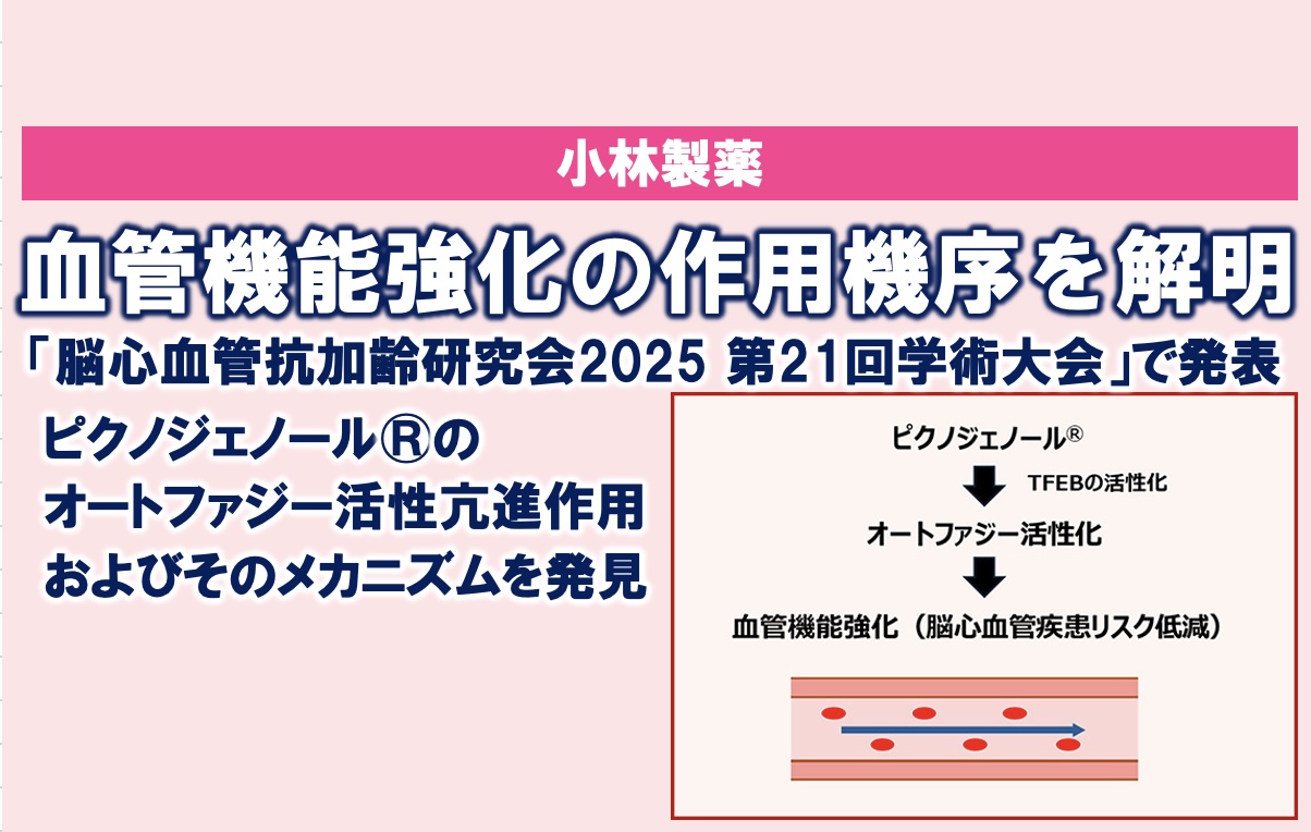 ピクノジェノール®のオートファジー活性亢進作用およびそのメカニズムを発見〜「脳心血管抗加齢研究会2025 第21回学術大会」で発表 小林製薬株式会社(豊田賀一社長)は、ピクノジェノール®(フランス海岸松樹皮エキス)*1が...